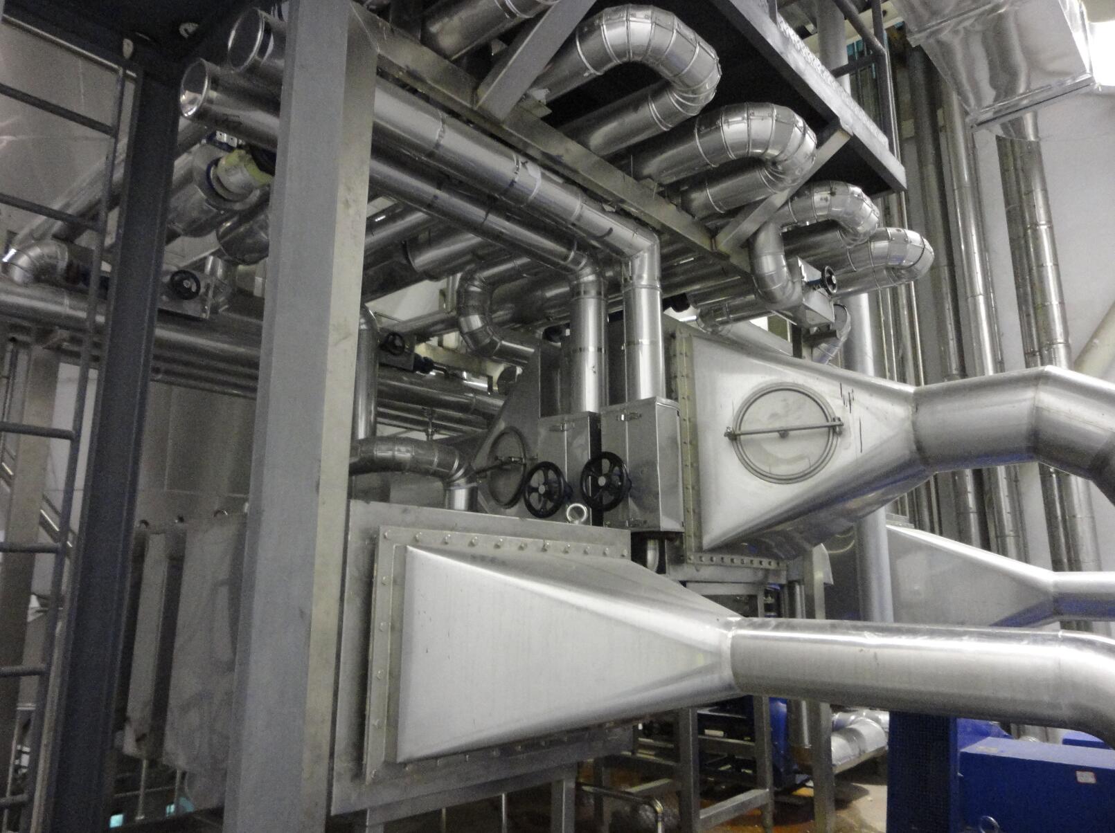 本机组与物料接触部分的塔体、管道、分离器的材料,均采用SUS304制作。在塔体内部与外壳之间有保温层,填充材料为岩棉,塔体设有观察门、视镜、光源及控制仪表,由电器控制操作台控制和显示。