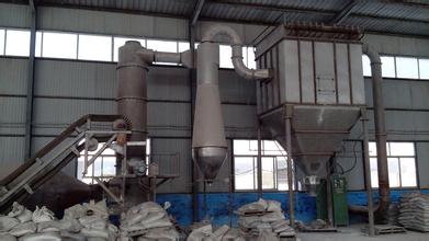 旋转闪蒸干燥机热空气切线进入干燥器底部,在搅拌器带动下形成强有力的旋转风场。膏状物料由螺旋加料器进入干燥器内,在高速旋转搅拌桨的强烈作用下,物料受撞击、磨擦及剪切力的作用下得到分散,块状物料迅速粉碎,与热空气充分接触、受热、干燥。脱水后的干物料随热气流上升,分级环将大颗粒截留,小颗粒从环中心排出干燥器外,由旋风分离器和除尘器回收,未干透或大块物料受离心力作用甩向器壁,重新落到底部被粉碎干燥。