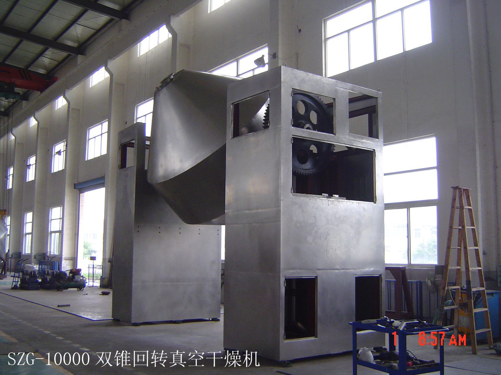 在动力驱动下,罐体作缓慢旋转,罐内物料不断地混合,从而达到强化干燥的目的。